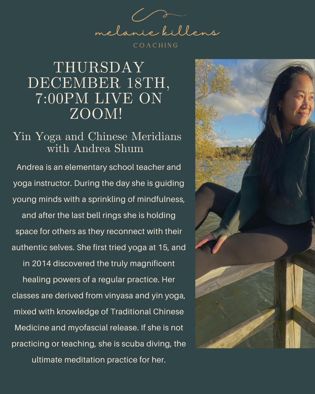 Yin Yoga and Chinese Meridians with Andrea Shum Dm me on Instagram at https://www.instagram.com/movewellwithmelanie/ to save your spot!